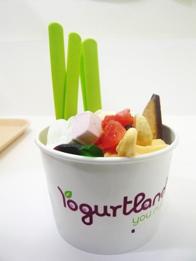 Mix and match your favourite yoghurt flavours together, add fruits and toppings, weigh and pay, and ENJOY ! Fun place. Singapore should invest in one ^^