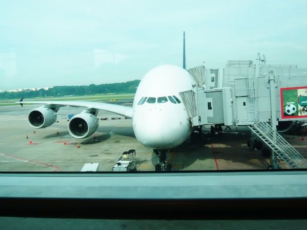 This was the SQ A380 that we took to HK. Wasn't much of a difference from other Singapore Airlines planes once you were inside of it. Heh.