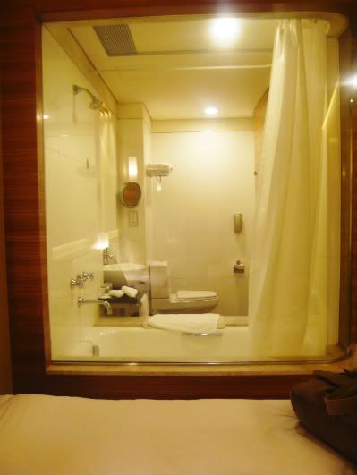 THIS IS THE HIGHLIGHT OF THE ROOM - TRANSPARENT GLASS SURROUNDING BATHROOM. YIPEE :D