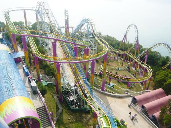 This Ferris Wheel's not like other kinds of ferris wheel. This one does not stop at the very top for the people to have a whole view of Ocean Park. It just keeps moving at this speed which was considered rather fast for a Ferris Wheel O:
