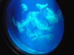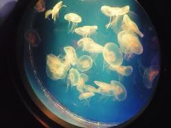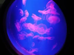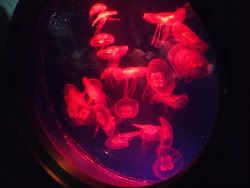 Yeah right. The coloured lights are just to show you that the jellyfishes are translucent. But they're really pretty so who cares if they can really change colours or not. Heehee.