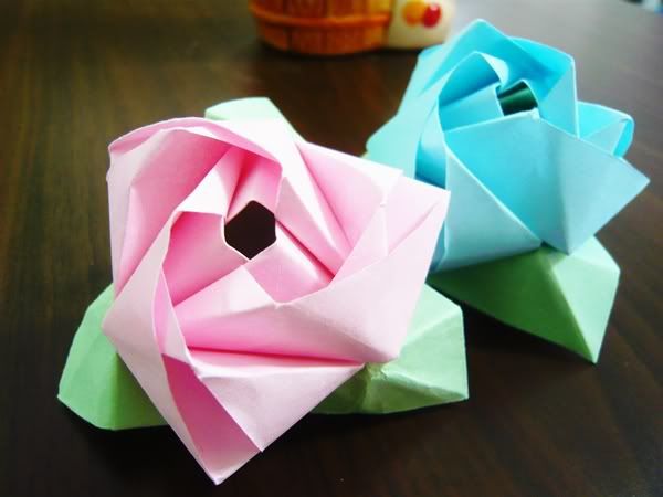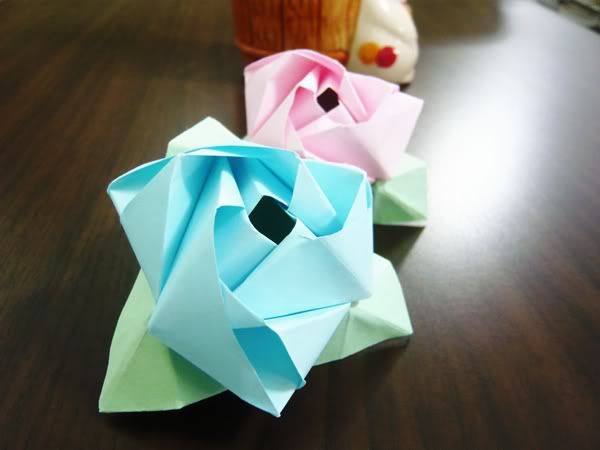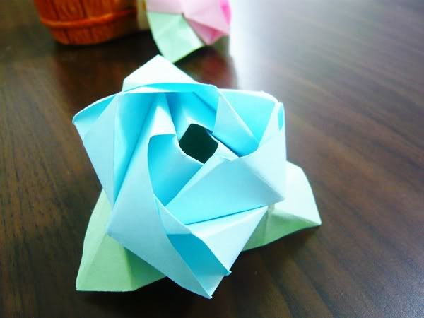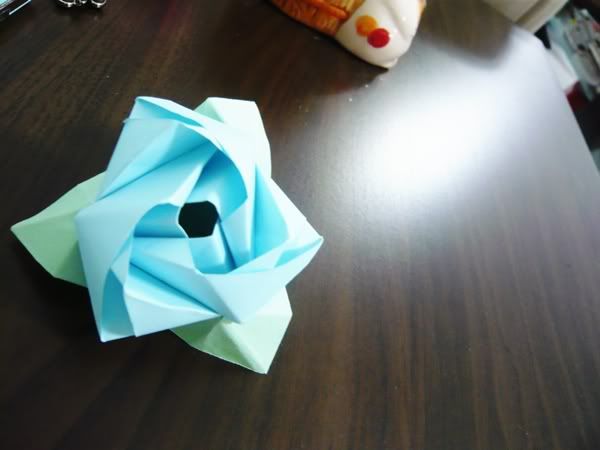 I tested out with pink paper, so here's a blue rose for myself! :D