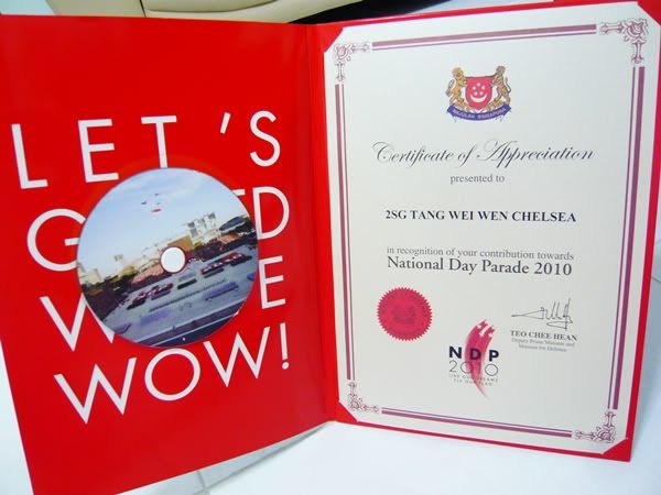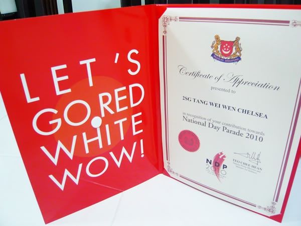 The certs came kinda late, but hey, better late than never :) They gave me mixed feelings - I felt they joy when I was with Swiss Winds, yet I'm kinda sad that I'm not with them anymore. For HK, the most wonderful times I've spent with my band mates, juniors, seniors all came flooding back, all the epic yet memorable pictures taken together, the joy we shared when the judges announced that we've gotten a GOLD Award, the fun and laughter we had @ Disneyland, practically every moment @ HK. For NDP, it reminded me of the sucky packet food from godknowswhere, all the PizzaHut and KFC sponsors, all the Milo trucks, the glaring sun, the roaring applause and cheers, the new tailor-made uniform, and many many other funny incidents.