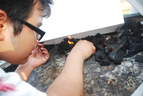 Yeah! Fire started successfully! And we start bbq-ing! ^^
