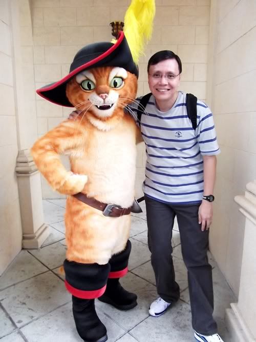 So during that time my dad entertained himself by taking shot with the mascots! I want Puss In Boots too! ):
